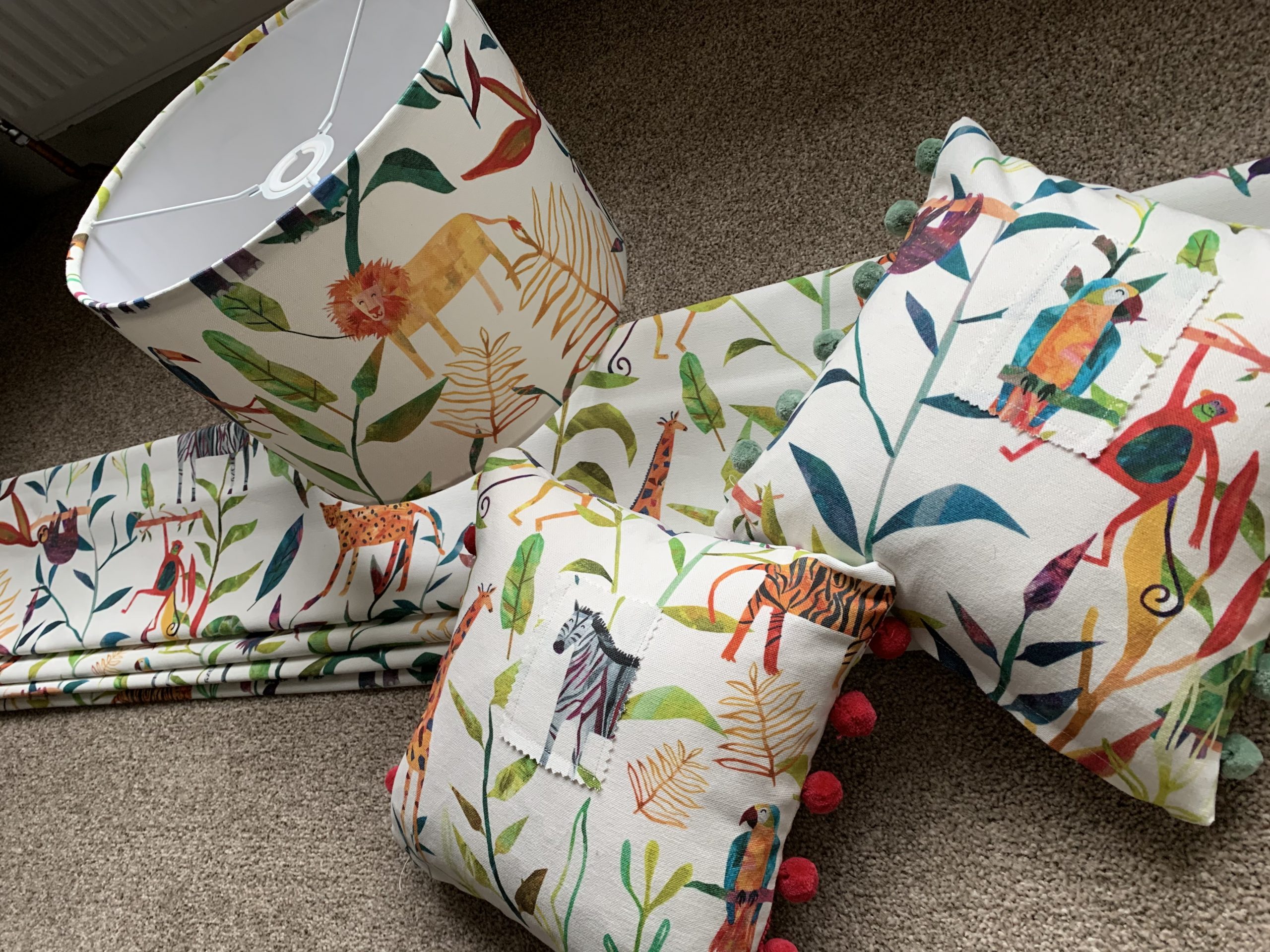 This Lampshade is made from the New Hide & Seek Jungle collection.